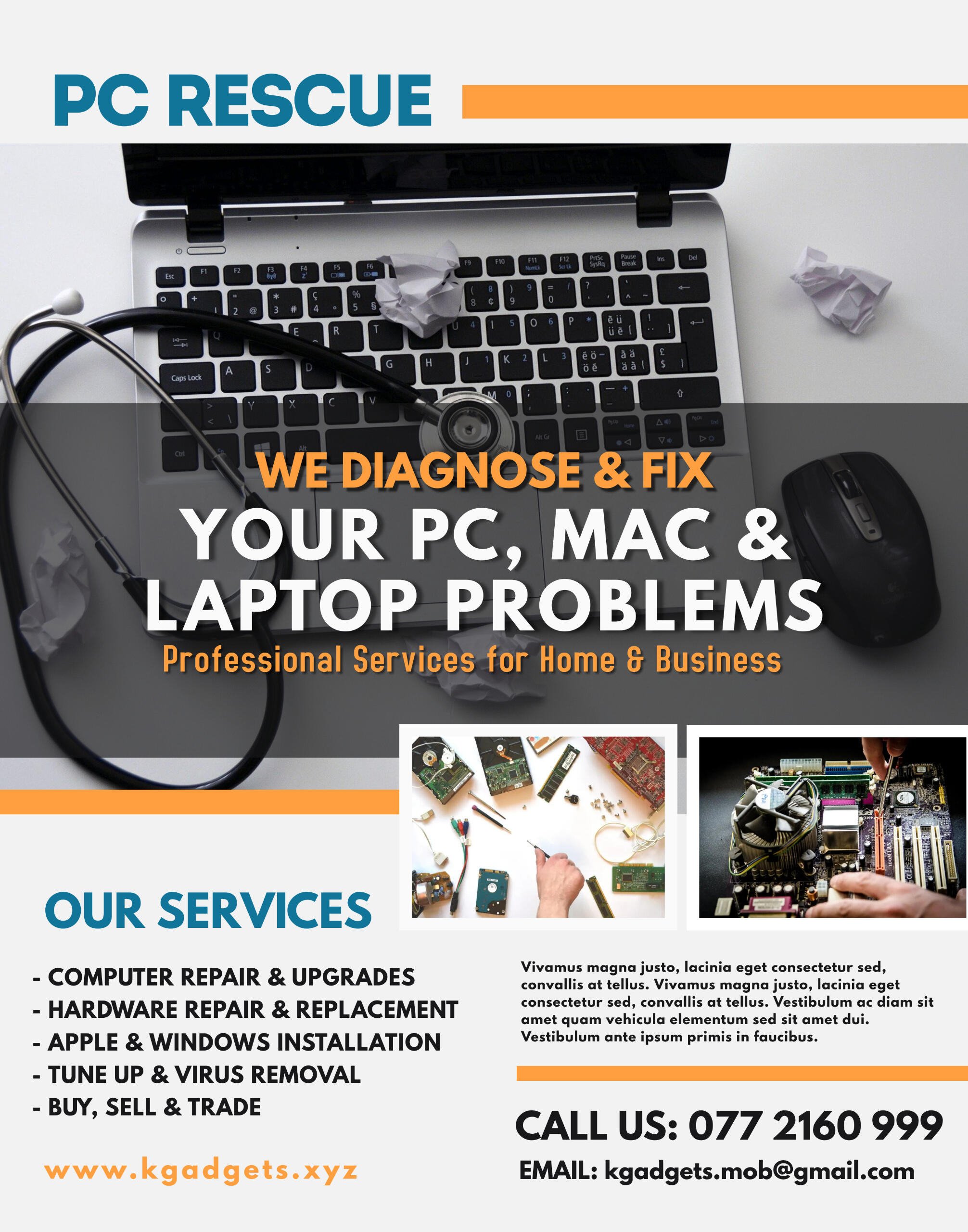 Here at kgadgets, we offer an extensive range of professional IT repairs and services covering all aspects of computer repairs and maintenance. We also provide a range of smart phone repair services, including mobile phone screen repairs. In addition to our repair services, we sell a wide range of computer and smartphone accessories. So, if you are looking for local computer or mobile phone repairs or accessories, look no further than KGADGETSFIX